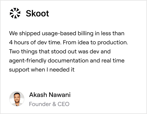 " We shipped usage-based billing in less than 4 hours of dev time. From idea to production "