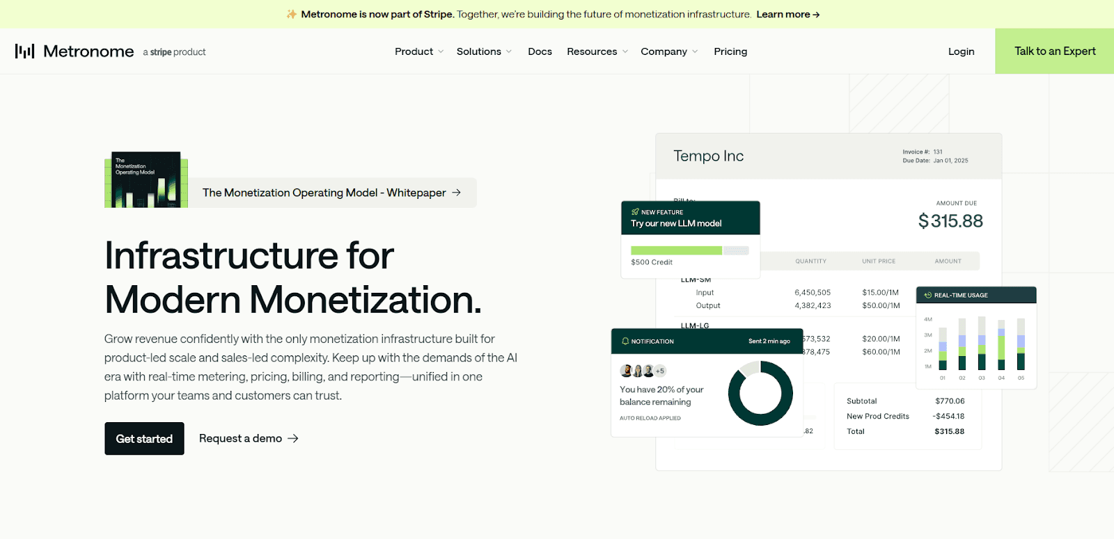 Metronome (acquired by Stripe)is a usage-based metering platform for SaaS and AI companies focused on metering high-volume usage data and turning it into invoices. As one of the alternatives to Orb, it lets teams stream events, define metrics and pricing, and then apply those rules across various pricing models.
