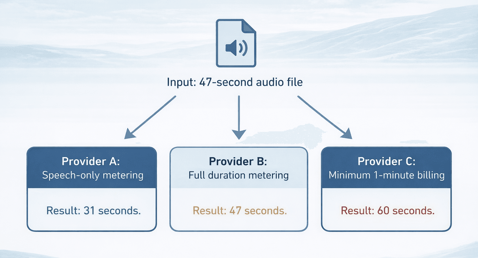 For infrastructure providers (STT, TTS, LLM), per-minute inconsistency is a known cost of doing business. They set their own definitions, and their customers adapt.