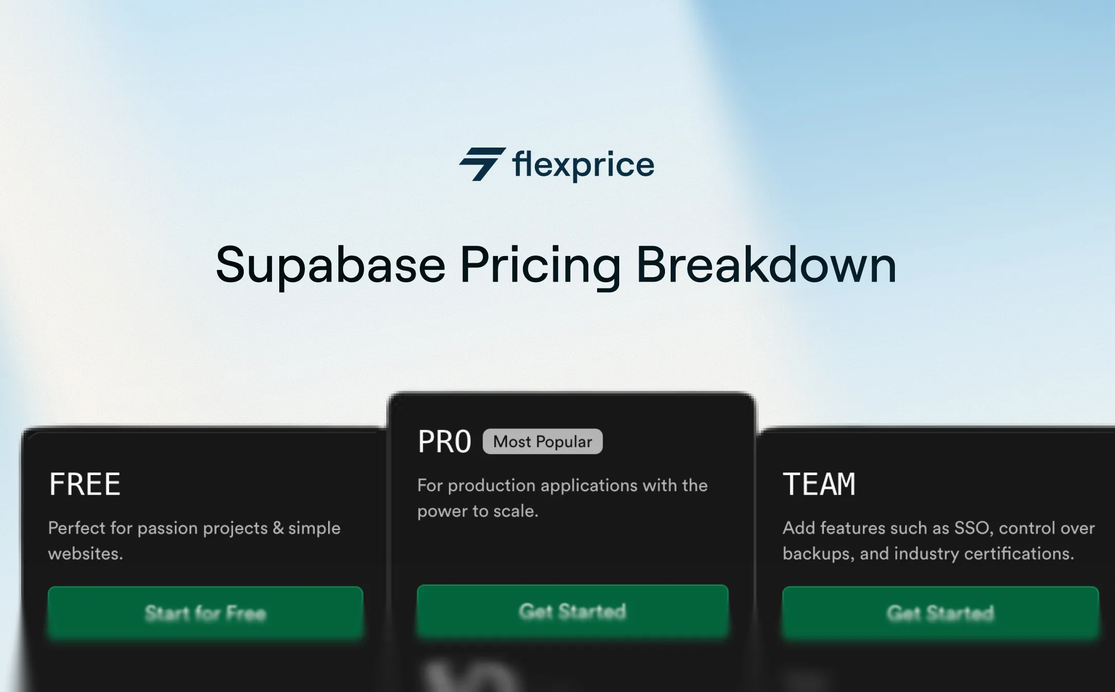 Supabase uses what’s called a hybrid pricing model: base fee with usage-based charges. That means you pay a fixed monthly fee for a base plan, then pay extra if you cross certain usage limits.
